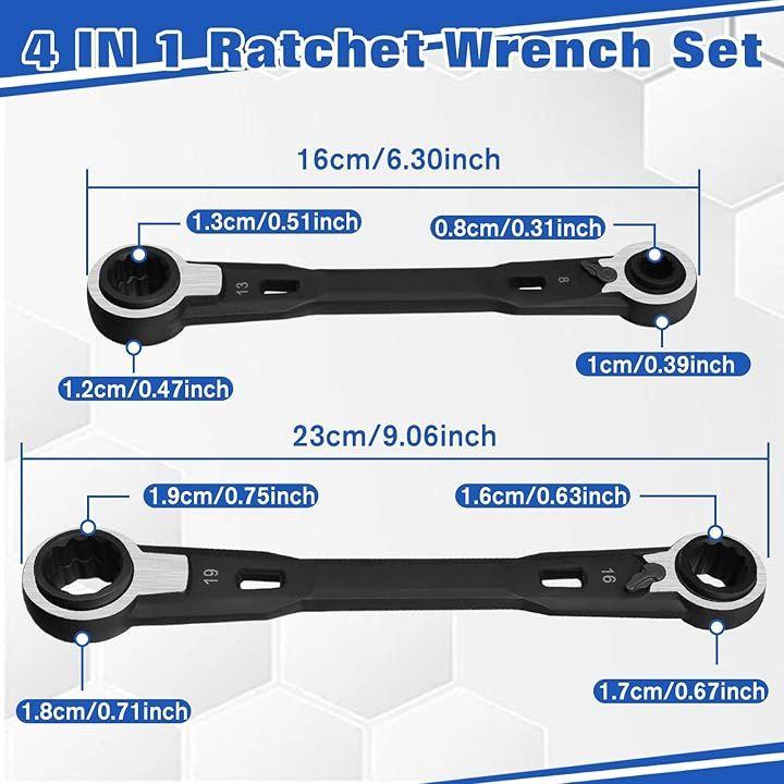 用途:このレンチには、4つの異なるレンチサイズが含まれているので、作業中に工具を交換するお金、保管スペース、時間を節約できます