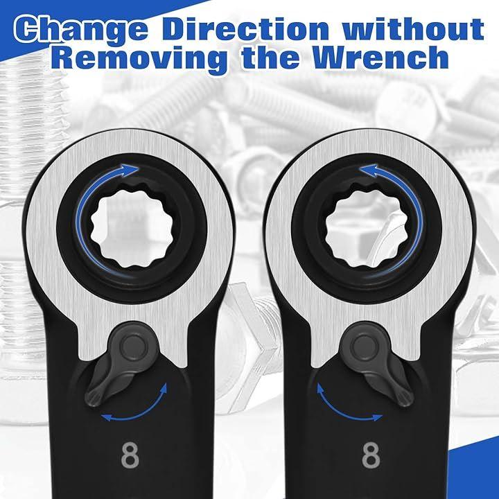 仕様:この4-in-1ラチェットは、8つの異なる仕様、小さなレンチ8ミリメートル、10ミリメートル、12ミリメートル、13ミリメートル、大きなレンチ16ミリメートル、17ミリメートル、18ミリメートル、19ミリメートル、各仕様は明らかにレンチにマークされていると、メトリックサイズです
