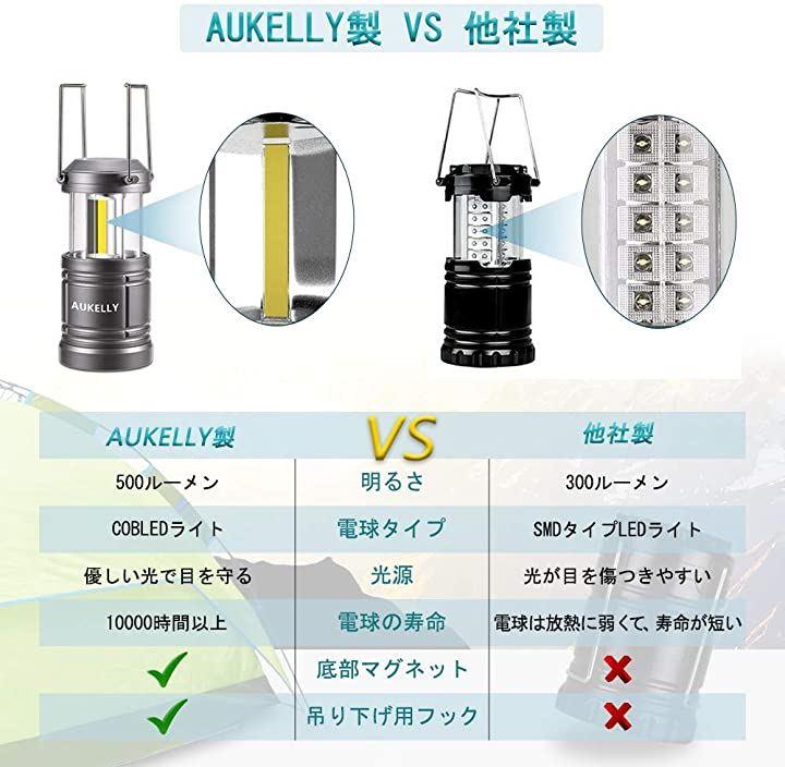 ・「COB LED高照度」ランタンは最新テクノロジーである3個の高密度COB LEDを採用し、360度の範囲を照らし、その明るさはなんと500ルーメン。