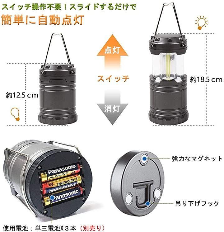 2個セットランタン 電池式 led キャンプ ランタン電池式 折り畳み式 テントライト スライド式 COBランタン マグネット式 キャンプランタン 携帯型 ポータブル テントライト乾電池式 停電 登山 夜釣り ハイキング キャンプ用 アウトドア&防災用品 緊急対応用品