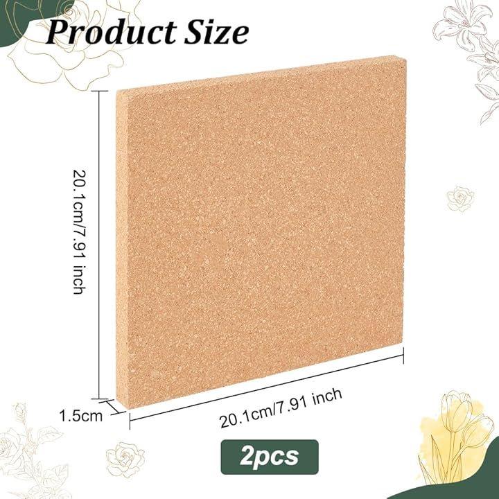 OLYCRAFT 2個 コルク コルクボード コルク断熱ボード パッケージとサイズ:パッケージには、正方形のコルク断熱材(ナチュラルコルク色)が2枚入っています。