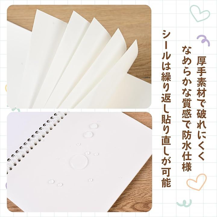 剥離紙仕様の台紙を採用しており、貼っても簡単にはがせて繰り返し使用可能。