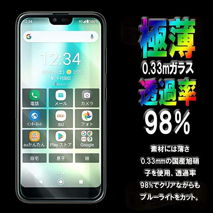 ・「商品仕様1」ブルーライトカット率90% 薄さ0.33mm 硬度9H 2.5Dラウンドエッジ加工 高透過率98% 飛散防止処理の国産旭硝子素材を使用。