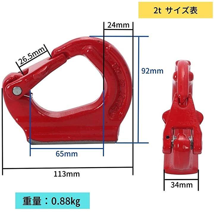 ・*「商品仕様」・長さ:約113mm ・溶接面の長さ:約65mmx幅約34mm ・高さ:約92mm ・最大吊り上げ重量 2t ・材質:G80合金鋼