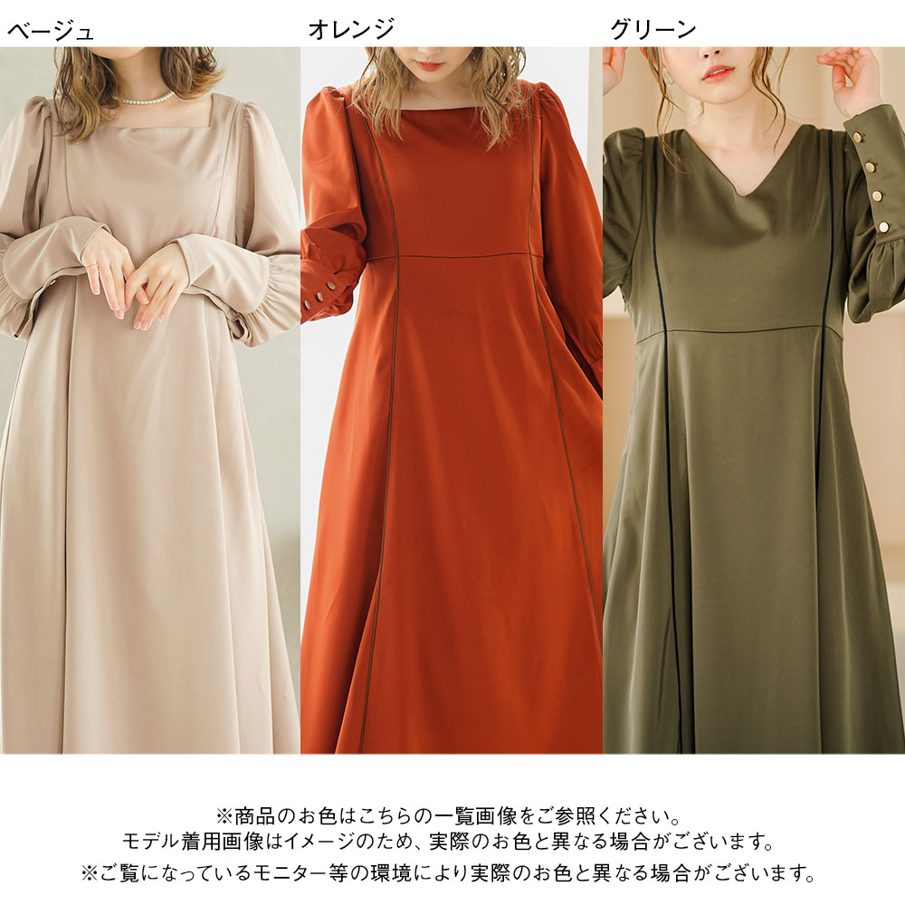 【デザイン】ハイウエスト切替+ラインの美しさにこだわり、着るだけでスタイルアップが叶うデザイン。肩~袖にはたっぷりギャザーを寄せて、かわいらしさを演出します。ボディカラーによって違うパイピング配色も、シンプルながら存在感があります。