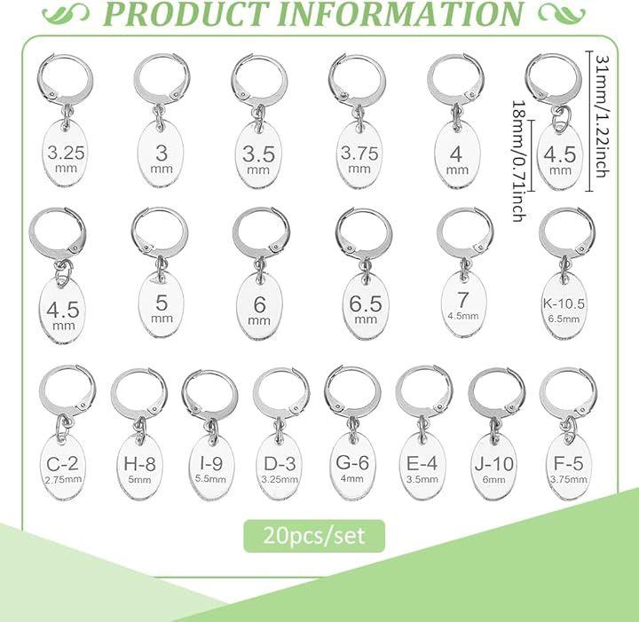 数字マーカー:それぞれの楕円形アクリルペンダントには異なるサイズ情報が付けされており、ご自身の編み物プロセスに応じて使用したいマーカーを選ぶことができます。