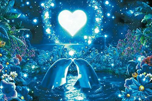 通常1-5営業日で発送:イルカのまわりには、美しく咲き誇る花が沢山あり、パズルを組むときのヒントが多い。ハートが飛び交うラブリーな作品は、飾ってもお部屋を素敵に彩り、気分をハッピーにしてくれることでしょう。