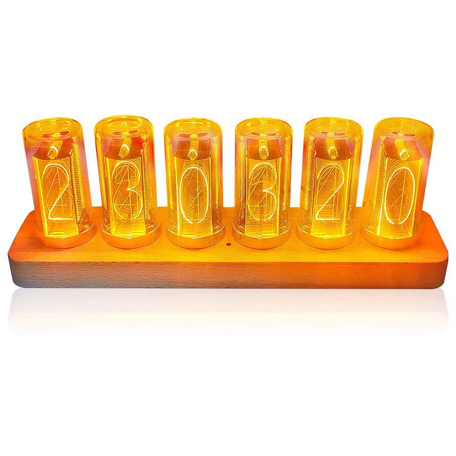 2021新版 目覚まし時計 レトロ ニキシー時計 デジタル ジクシー 時計 6桁LED 置き時計 贈り物 クリスマス プレゼント LEDデジタル木製置時計