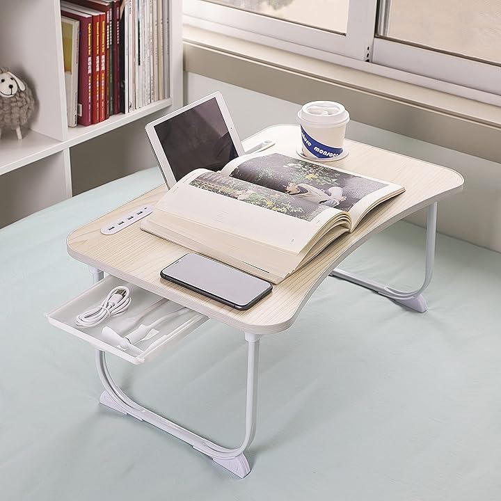 「多機能折りたたみテーブル」USB読書灯とファンが付属しています、折りたたみテ ーブルには、4*USBポート・タブレットスロット(最長辺の22CMを超えないタブレットに適用)があって、ラップトップ やスマホやタブレットに充電するのが便利です。