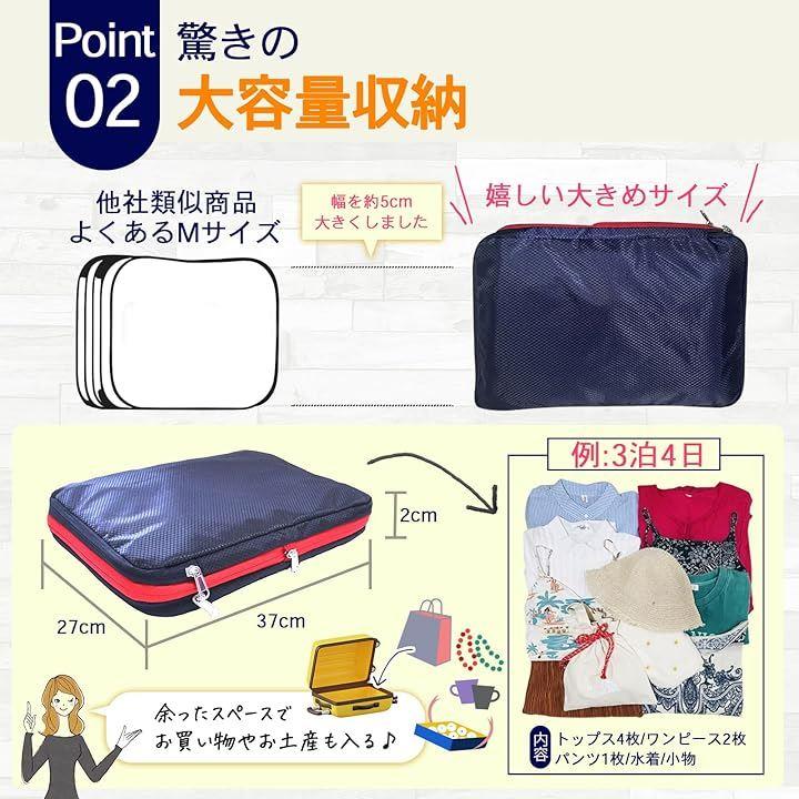 「驚きの大容量」嬉しい大きめサイズなので、2泊~3泊分の衣類をスッキリ纏めることができます。
