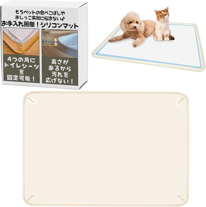 このようなお悩みはありませんか? ・おしっこがトイレシートの外にはみ出る ・トイレシートがすぐにズレる ・プラスチック製のシートホルダーはお手入れが煩雑/高さがあるため躓く ・ご飯や水をこぼしながら食事をする ・フローリングやお風呂場などで滑ってしまう シリコンマットはそんなお悩みを解決します。 食べこぼしやおしっこ失敗にもう悩まない。 1.5cmのフチがあるためこぼれません。汚れてもさっと拭くだけ。 たくさんのお客様に選ばれています。 当社のシリコンマットが選ばれる5つの理由 ポイント(1)トイレシーツを四隅に固定可能。 4つの角にトイレシートを固定するホルダーがついているため、シーツが剝がれにくい。ホルダーに固定しなくてもトイレシートがズレにくいよう設計しています。