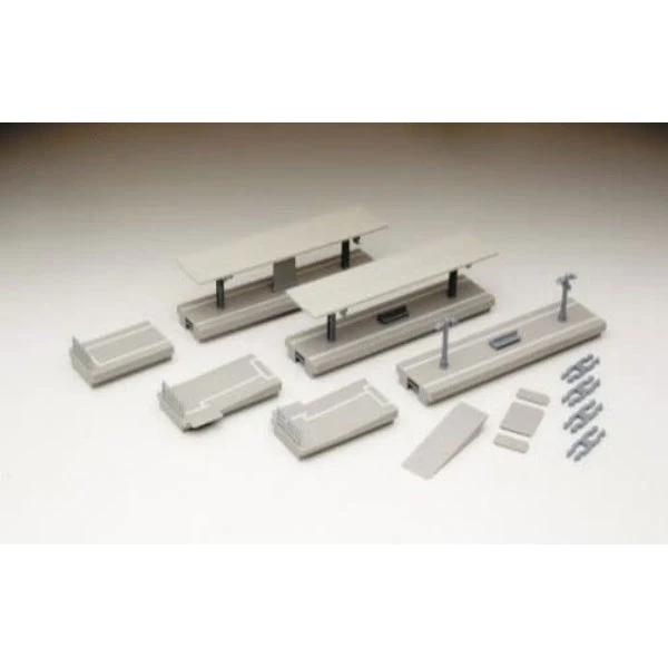 23-129 KATO カトー 氷河特急用ホームセット Nゲージ 鉄道模型・氷河特急をはじめ海外でよく見られるスタイルのホームをプロトタイプに島式ホームでモデル化・屋根付のホーム×2 、屋根なしのホーム×1に、ホームエンド×1、スロープ(左・右)×各1の組み合わせ・各ホーム部分の長さは124mm、ホームエンドは48mm、スロープ部分が57mm。幅はユニトラック複線間隔49.5mmに対応・1セットには車両製品の基本セット3両が停車可能。「駅舎+ホームセット×2」で、氷河特急フル編成の7両が停車できます。・屋根や外灯、フェンスなどは近代的なタイプを再現した完成品など【セット内容】ホームA(屋根/駅名板付)×1、ホームB(屋根/ベンチ付)×1、ホームC(外灯/ベンチ付)×1、ホームエンド×1、ホームスロープ(左)×1、ホームスロープ(右)×1、取り扱い説明書×1