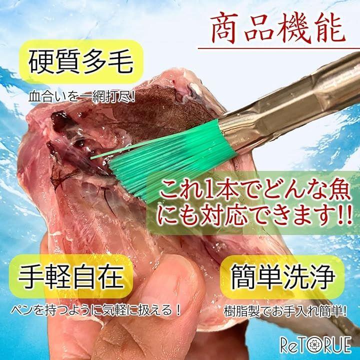 「商品機能」(1)硬質多毛:強いコシでラクラク血合いを一網打尽。