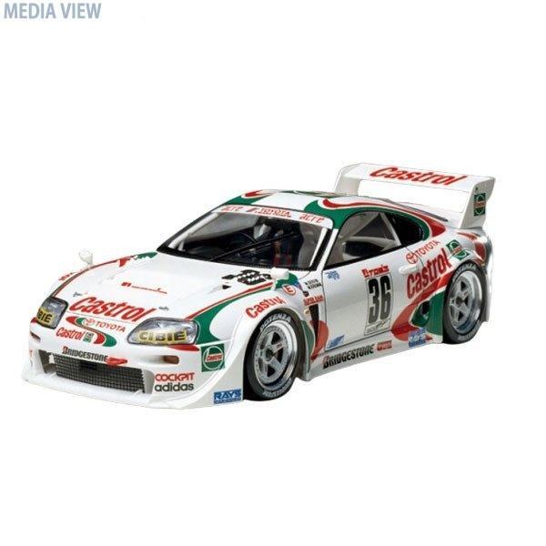 タミヤ 24163 1/24 スポーツカー163 カストロール トヨタ トムス スープラ GT プラモデル 1995年の全日本GT選手権で活躍したカストロール・トヨタ・スープラGTのプラスチックモデル組み立てキットです。前後のオーバーフェンダー、エアアウトレットを設けたボンネット、巨大なリヤウイングなどを装備してGTマシンに仕上げられたフォルムをリアルに再現。ロールケージを装備した室内は、消火器やダクトホースなど細かな部分まで精密にモデル化し、サイドパネルを別パーツとして立体感あふれる仕上がりです。純レーシングカー仕様のダブルウィッシュボーン・サスペンションなど、シャーシも見ごたえたっぷりです。 全長:188mm(1/24スケール) プラスチックモデル ※組み立て・塗装の必要なプラモデルです。