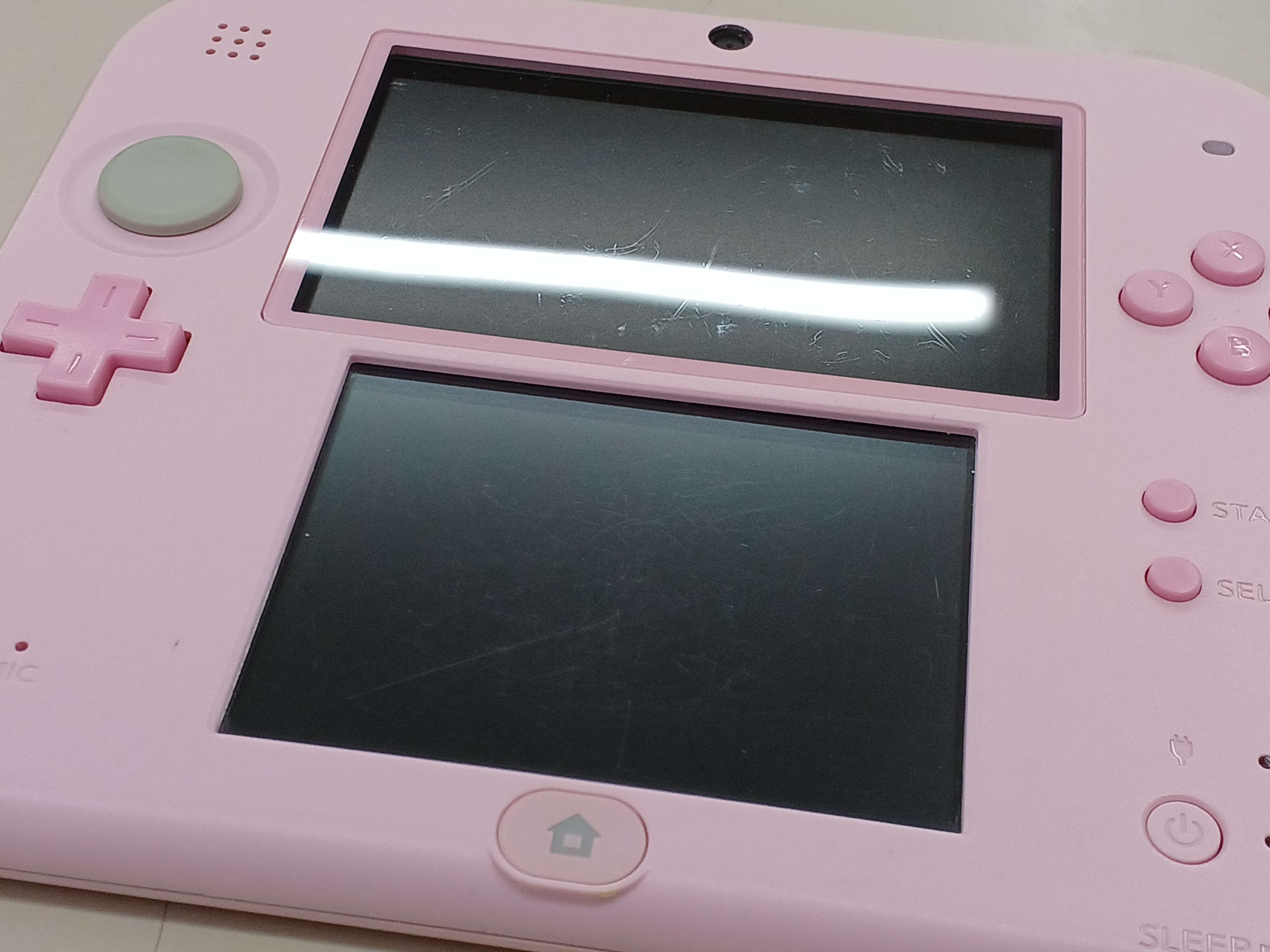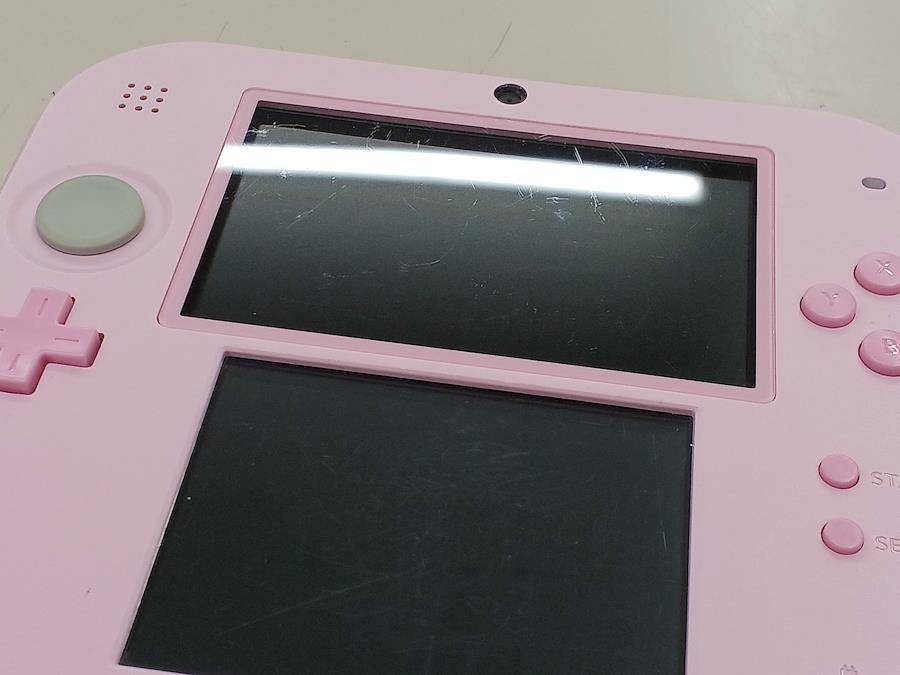 ■備考3D機能を省いた2DS!3DS/DSのソフトが遊べます!※New3DS専用ソフトは非対応付属品:ACアダプター。状態:上下の画面にキズあります。背面に黄色い汚れあります。タッチペンを固定するツメが折れているため、ペンが固定されません。