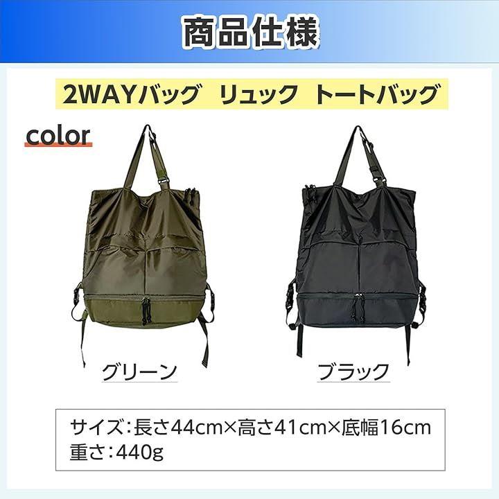 「サイズ:縦約44cmx横約41cmxマチ約16cm」この2WAYバッグは、リュックとトートの両方で使える多機能設計。