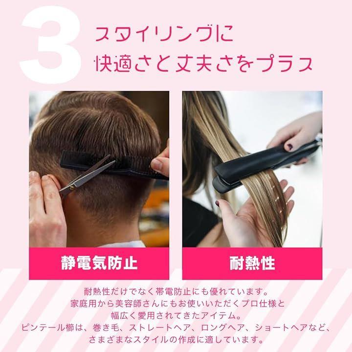 髪を優しく整える: 細かく整った歯が絡まりを防ぎ、スムーズに髪を整えます。