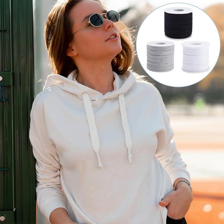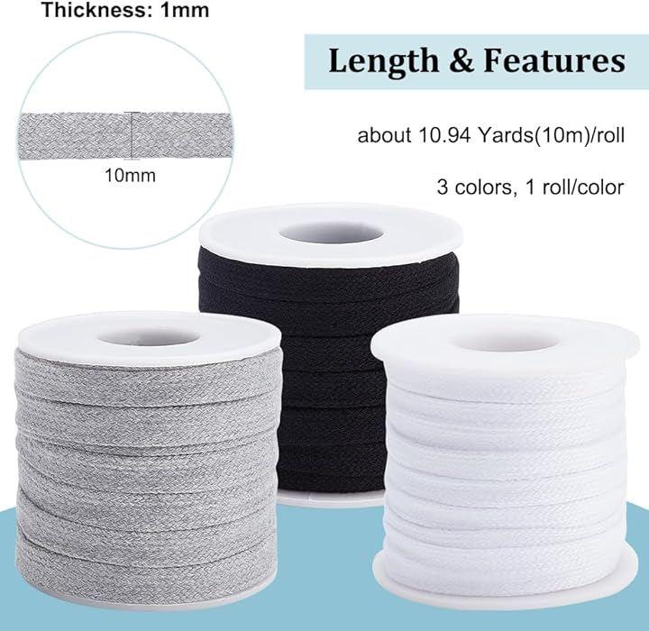 サイズ詳細:コード: 幅約10mm、厚さ1mm、約10.94 ヤード(10m)/ロール、3色、1ロール/色;色:黒/白/グレー。