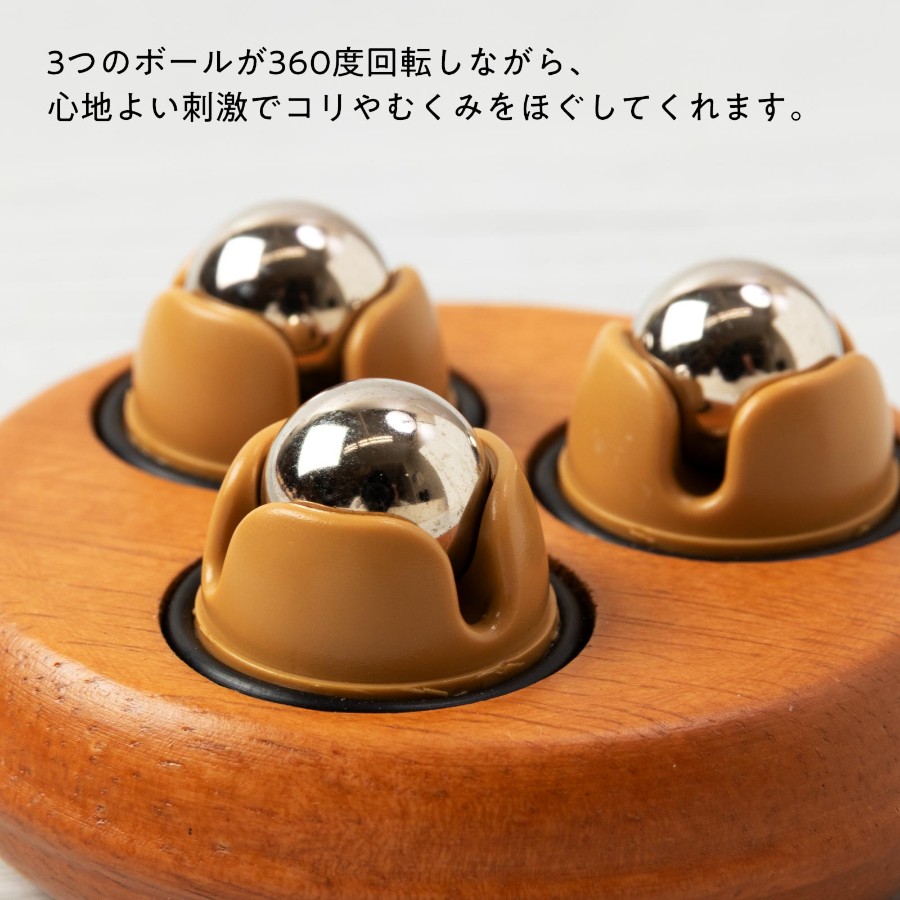 3つのボールが360度回転しながら、心地よい刺激でコリやむくみをほぐしてくれます。仕事の合間の息抜きに、家でのんびり過ごしながらコリほぐしに。毎日欠かせないアイテムになります。