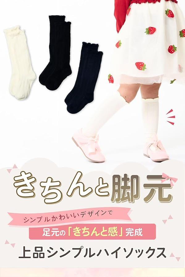 「使いやすい2色セット」白・白・黒のモノトーンカラーが揃った、上品でシンプルなキッズ用ハイソックス3足セット。