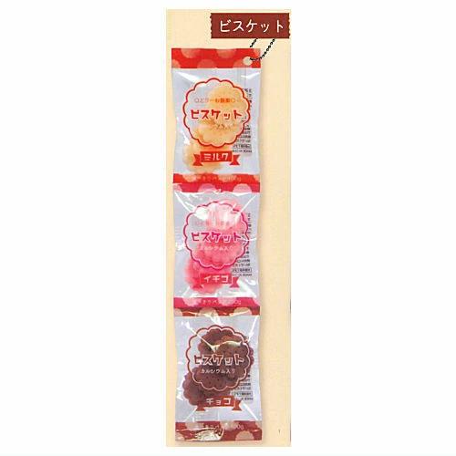 人気の3連お菓子が駄菓子屋デザインになって新登場!レトロ風なパッケージがかわいいです♪全種ボールチェーン付き!※食べられません。