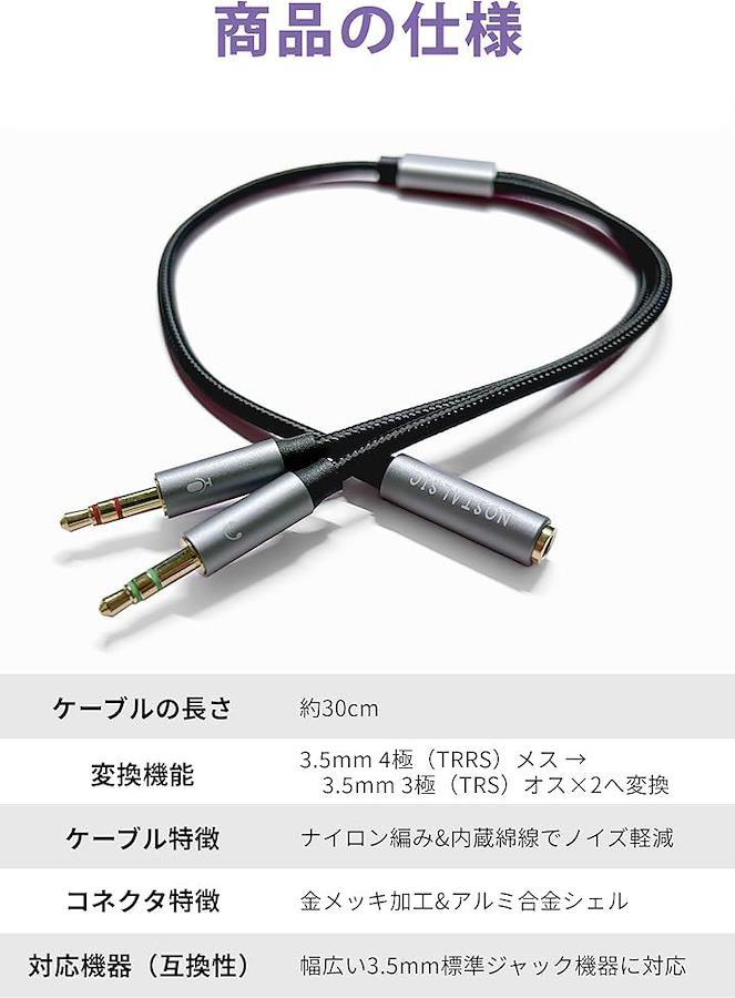 マイク(入力)とヘッドフォン(出力)を分岐し、クリアな音声接続を実現します。