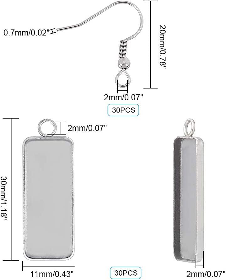 ・仕様&サイズ:ピアスベース:30x11x2mm、トレイ:10x25mm;穴径:2mm;フック:20x19x3mm、穴径:2mm;ピン:0.7mm;入り数:各30個;合計30セット;色:ステンレススチール色;;材質:304ステンレス
