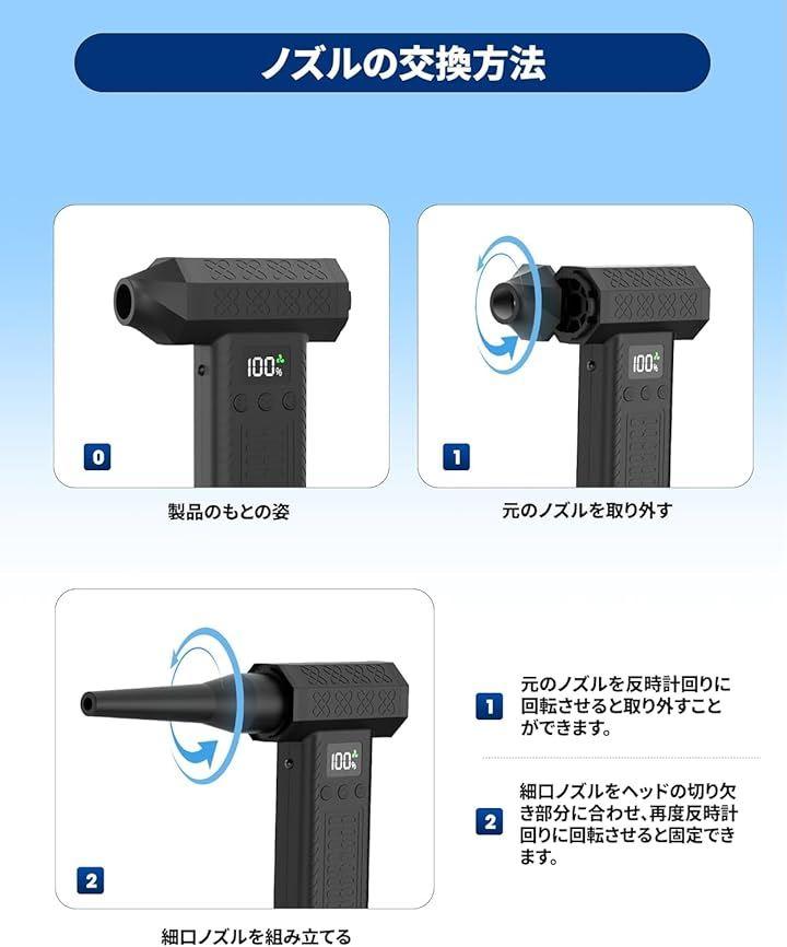 「100%真鍮超強力ブラシレスモーター」アップグレードされた超強力モーターを採用、コンピュータやその他のデバイスの隅々からほこりを吹き飛ばすことができます。