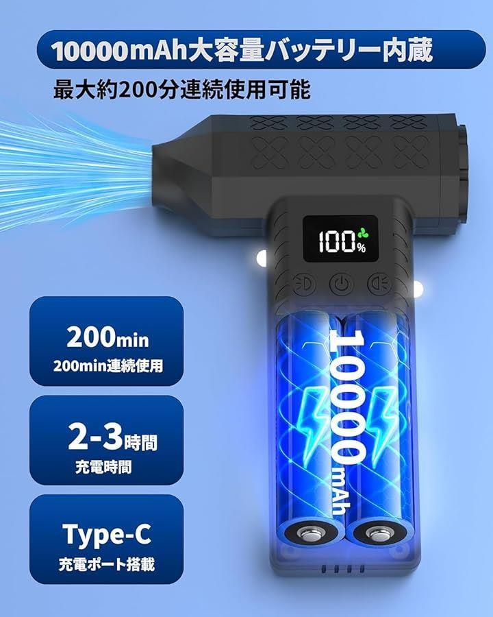 「10000mAh大容量バッテリー&急速充電可能」10000mAhの大容量リチウムバッテリーを内蔵しており、約2時間フル充電で最大200分使用可能で、各種作業の円滑な完了を支えることができます。