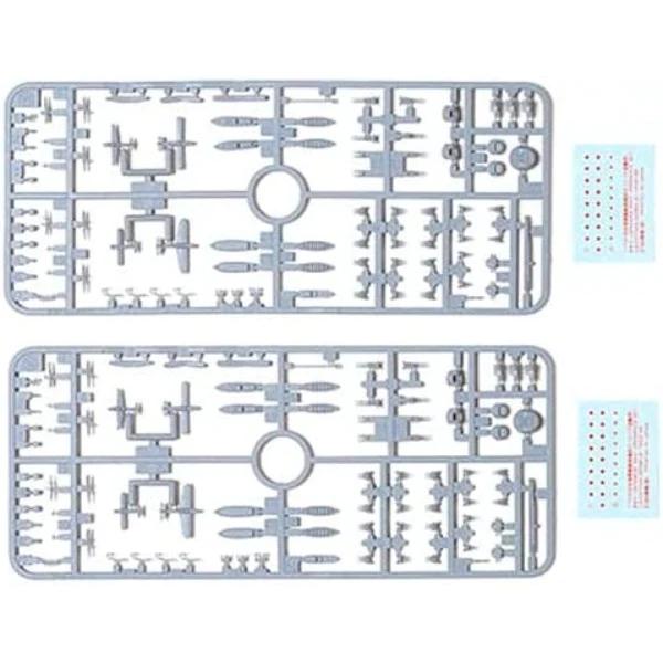 1/700 ウォーターライン新シリーズ 大型艦兵装セット 戦艦や巡洋艦、航空母艦など大型艦の対空兵装や装備品を中心としたアクセサリーセットです。高角砲や機銃、艦載水上機や搭載挺、さらに菊花紋章や錨、ボートダビットなどシャープな仕上がりで大型艦モデルの仕上がりを引き締めます。