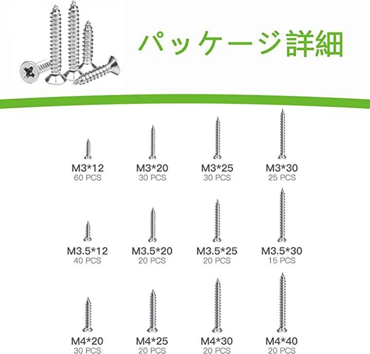 ・「タッピングねじ セットパッケージ詳細」木ネジ m3、木ネジ m3.5、 木ネジ m4。
