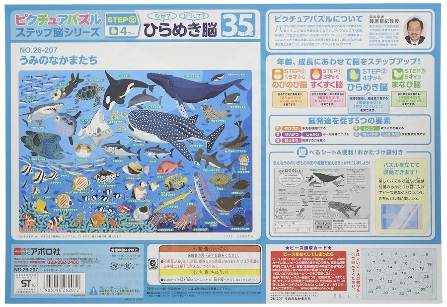 通常1-5営業日で発送【新品未開封品】年齢・成長にあわせてステップアップ!1952発売以来のロングセラー「ピクチュアパズル」に新シリーズ「ステップ脳シリーズ」が登場です。パズルは遊びの中で、自然に思考や発想、手先の器用さを養える玩具です。この「脳の発達を促す」ピクチュアパズルは文字・言葉、形・数、そして生活・社会のルールを学べるエデュケーショナル要素を盛り込むことでお子様の年齢に応じた学習を提供します。楽しみながら必要な能力えお身につけ、さらなる能力アップがはかれるパズルです。この「ひらめき脳」シリーズは、空間を認知し、創造性が高まる「構造あそび」で「なぜ?どうして?」を育てます。