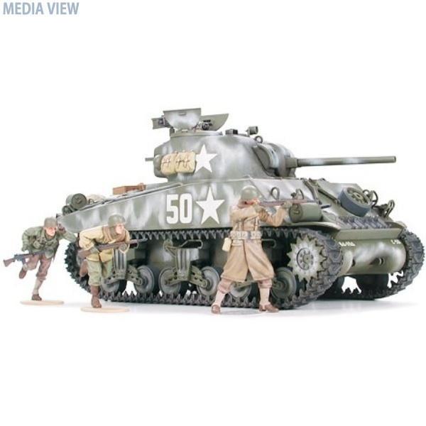 戦闘中の歩兵3名のフィギュアとシャーマン戦車を組み合わせ、情景展開を手軽に楽しめるキットです。MMシリーズ本来の楽しさに立ち返り、最前線の1シーンをモデルに凝縮しました。緊迫感あふれるポーズの人形3体はオーバーコート姿など大戦後期の冬期装備で再現。M4A3後期型はディッシュタイプの転輪や豊富な装備品を追加し、さらに充実感を高めます。全長172mm、全幅76mm。溶接車体に鋳造砲塔を備える75mm砲搭載のM4A3後期型をリアルにモデル化しました。車長用キューポラは2種類を用意、ローダーズハッチなど砲塔と車体の各ハッチは開閉を選んで組み立てられます。転輪とスプロケットも2種類を選択可能、キャタピラはゴムパッド付きのタイプをセット。躍動感あふれるポーズで再現した歩兵の人形3体、双眼鏡を手にする戦車長の半身像1体、そして機銃用弾薬箱や三脚架、携行食糧用木箱など豊富な装備品もセット。デカール3種類付き。
