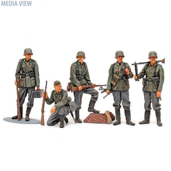 タミヤ 1/35 ドイツ歩兵セット (大戦中期) ミリタリーミニチュアシリーズ No.371 プラモデル 35371 ★第二次大戦中期のドイツ軍歩兵を再現した全身像5体セットです。★当時の一般的な野戦服を着用した姿を、戦場の緊張感が伝わる表情と汎用性の高い自然なポージングでモデル化。★Kar98kライフルやMG34機関銃、MP40短機関銃のシャープなディテールも注目。★臨場感を高めるアクセサリーパーツも豊富に用意しました。1/35スケールプラスチックモデル※組み立て・塗装の必要なプラモデルです。完成品ではございませんのでご注意ください。※商品の画像は試作品、実機・実車、イメージなどを内容の補助的説明として、掲載いたしておりますので実際の商品と異なる場合が御座います。