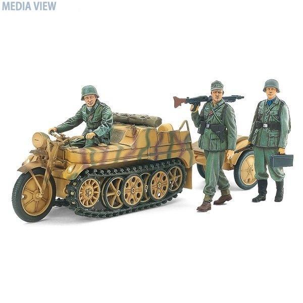 タミヤ 35377 1/35 ドイツSd.Kfz.2 ケッテンクラート中期型 ミリタリーミニチュアシリーズ No.377 プラモデル ★ケッテンクラート中期型の1/35スケール、プラスチックモデル組み立てキットです。★牽引時の全長139mm、全幅29mm。ユニークなフォルムはもちろん、緻密な足まわりなども実感豊かにモデル化。★エンジンや変速機はパーツ数を抑えて再現。エンジンハッチは開閉可能。★履帯は直線部を一体とした連結式。パッドは別部品として立体感あふれる仕上がり。★ドライバーと歩兵2体の人形付き。全長=139 mm (牽引時)プラスチックモデル※組み立て・塗装の必要なプラモデルです。完成品ではございませんのでご注意ください。