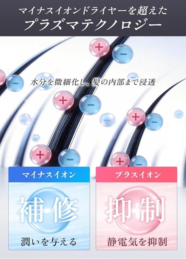 プラズマがダメージを受けた髪の毛一本一本を優しく包み込み、しっとりとしたケアを実現します。