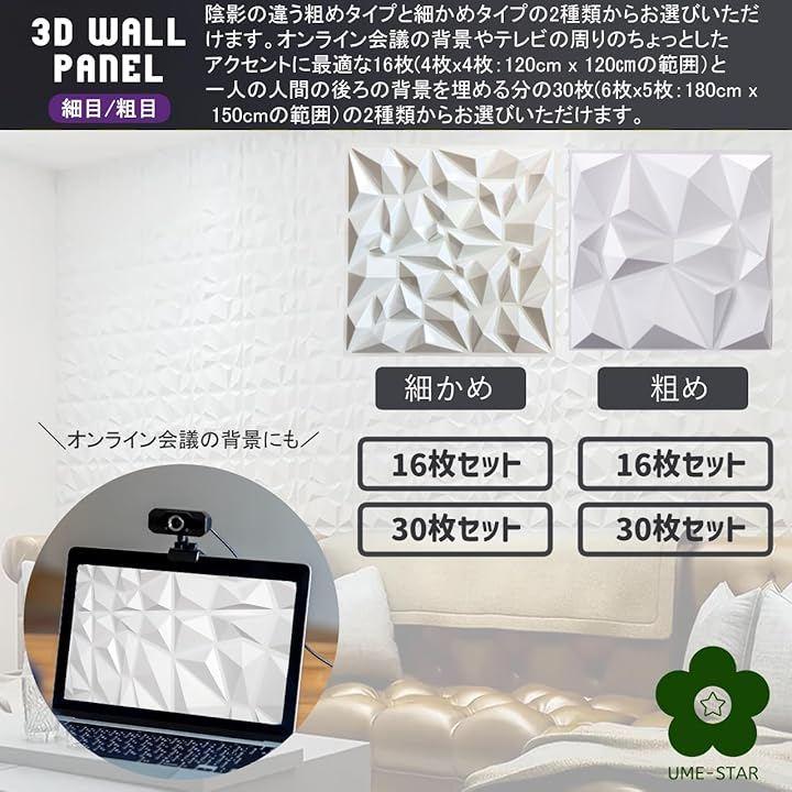 サイズ 30cm x 30cm レリーフの高さ 粗め:約2cm 細かめ:約1.5cm 内容物 16枚 / 30枚 重さ:1枚約70g