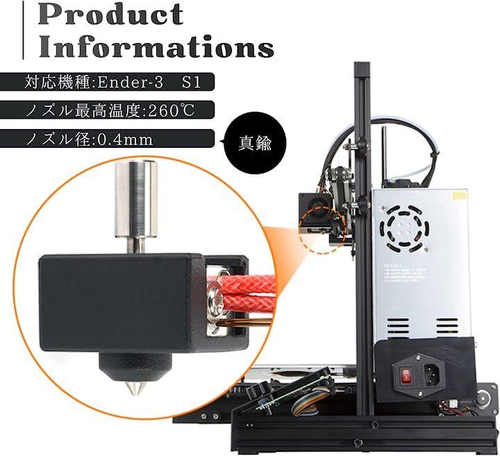 「対応機種」:Ender-3S1「ノズル最高温度」:260°C「ノズル径」:0.4mm
