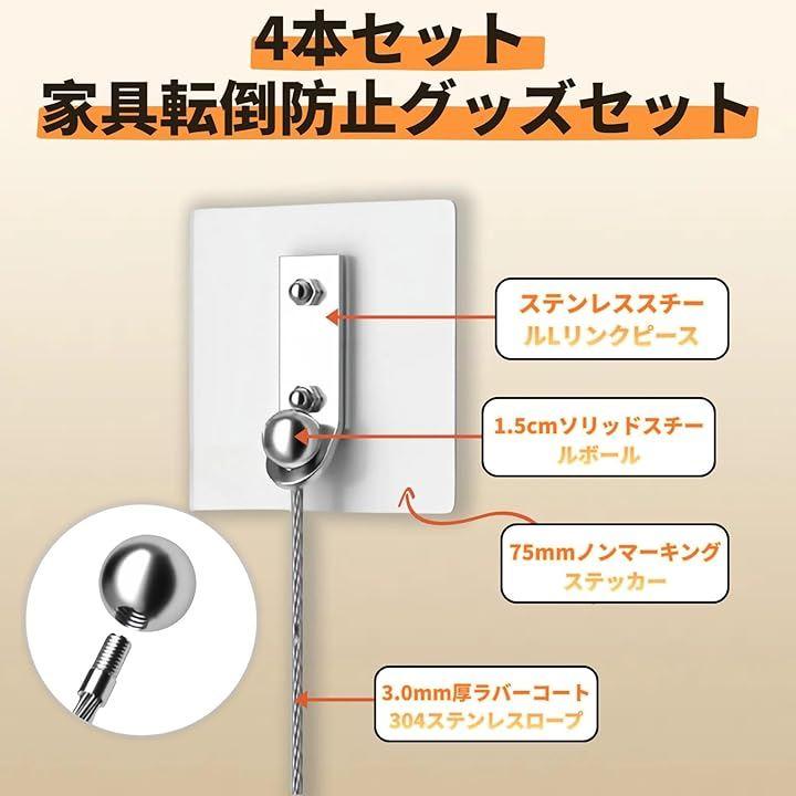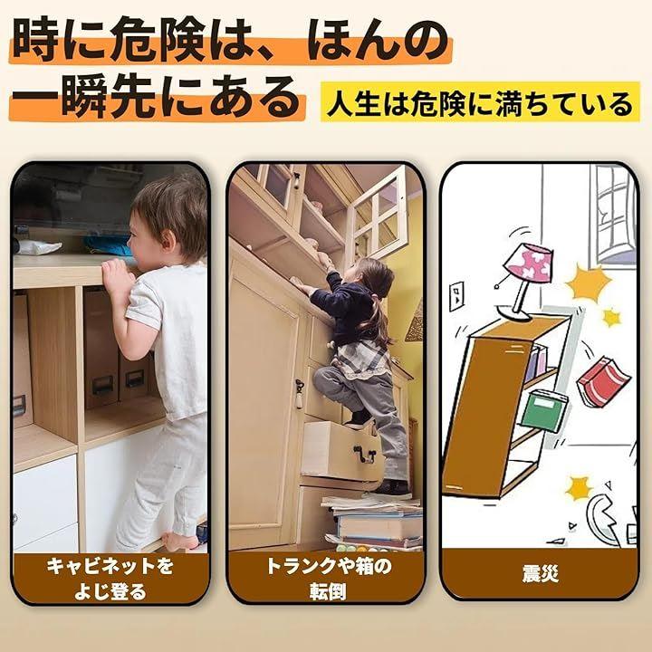 4点セット家具転倒防止: 取り付けが簡単な耐震ベルトので、壁に穴を開ける必要がありません.製品ページには、設置の悩みを解決する設置ビデオが用意されている