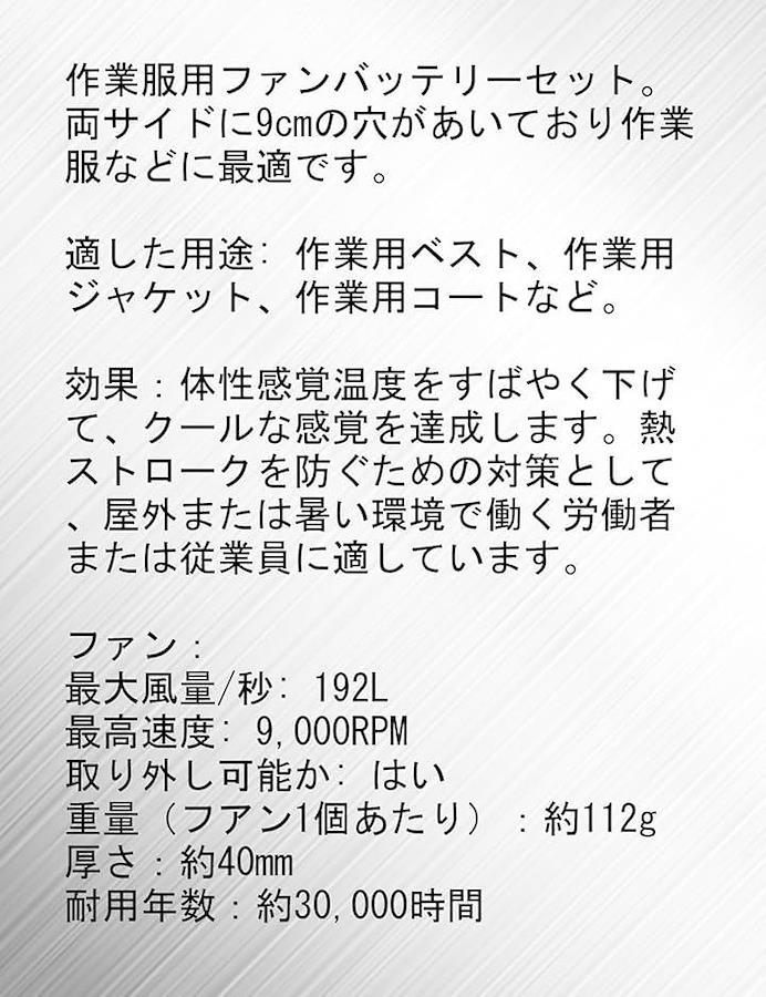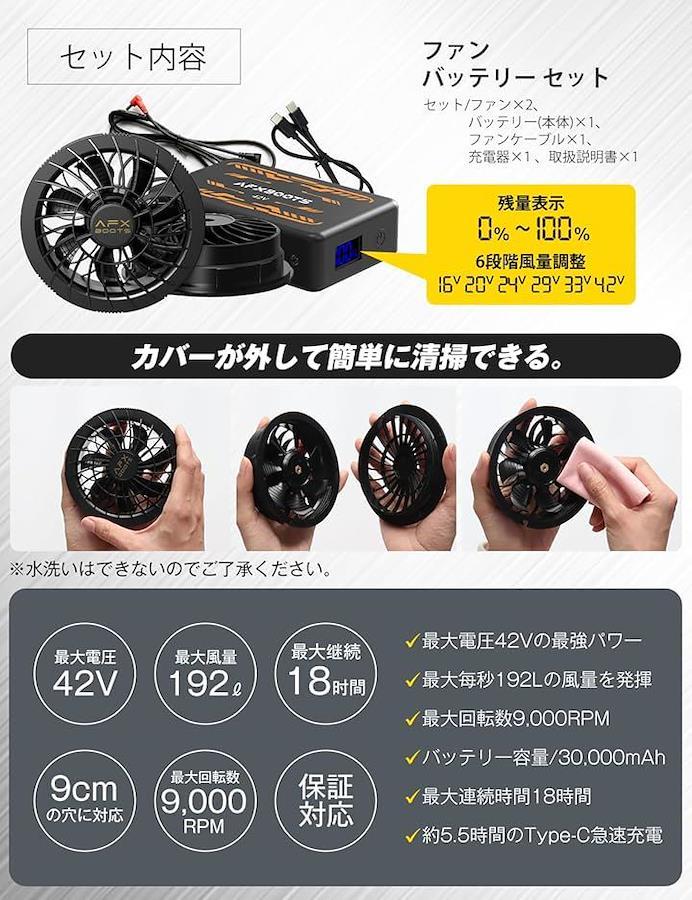 セット内容:ファンx2、バッテリー(本体)x1、ファンケーブルx1、充電ケーブルx1、取扱説明書x1