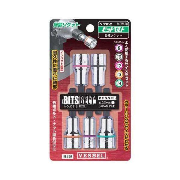 【機能・特徴】カラーリングでサイズが分かります。耐久性に優れた軸部です。各種ボルト・ナットの締付けに最適です。インパクトドライバー対応です。ホルダーケース付です。