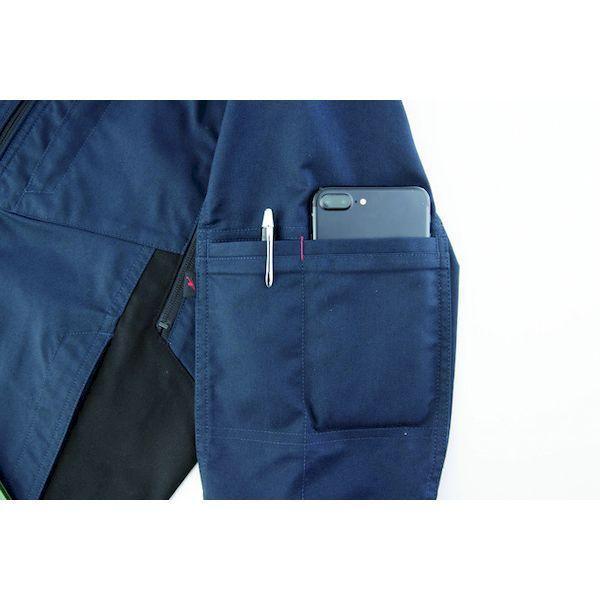 ●両胸ファスナーポケット フロント・バック反射素材 左腕マルチポケット 袖口Wドットボタン 背当てメッシュ 内ポケット