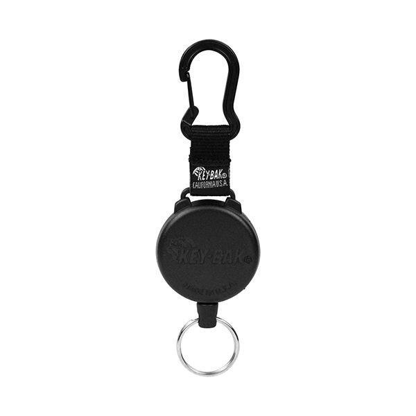 ベルト、バッグなどにワンタッチで引っ掛けられてとても便利なカラビナ付きキーリールです。