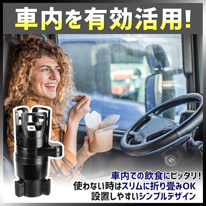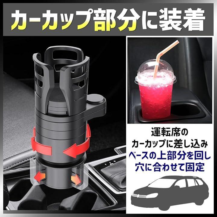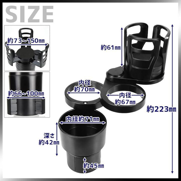 「セット内容」車載4in1カップホルダーx1点 「サイズ(約)」全長:223mm 「カラー」ブラック 「材質」ABS+PC