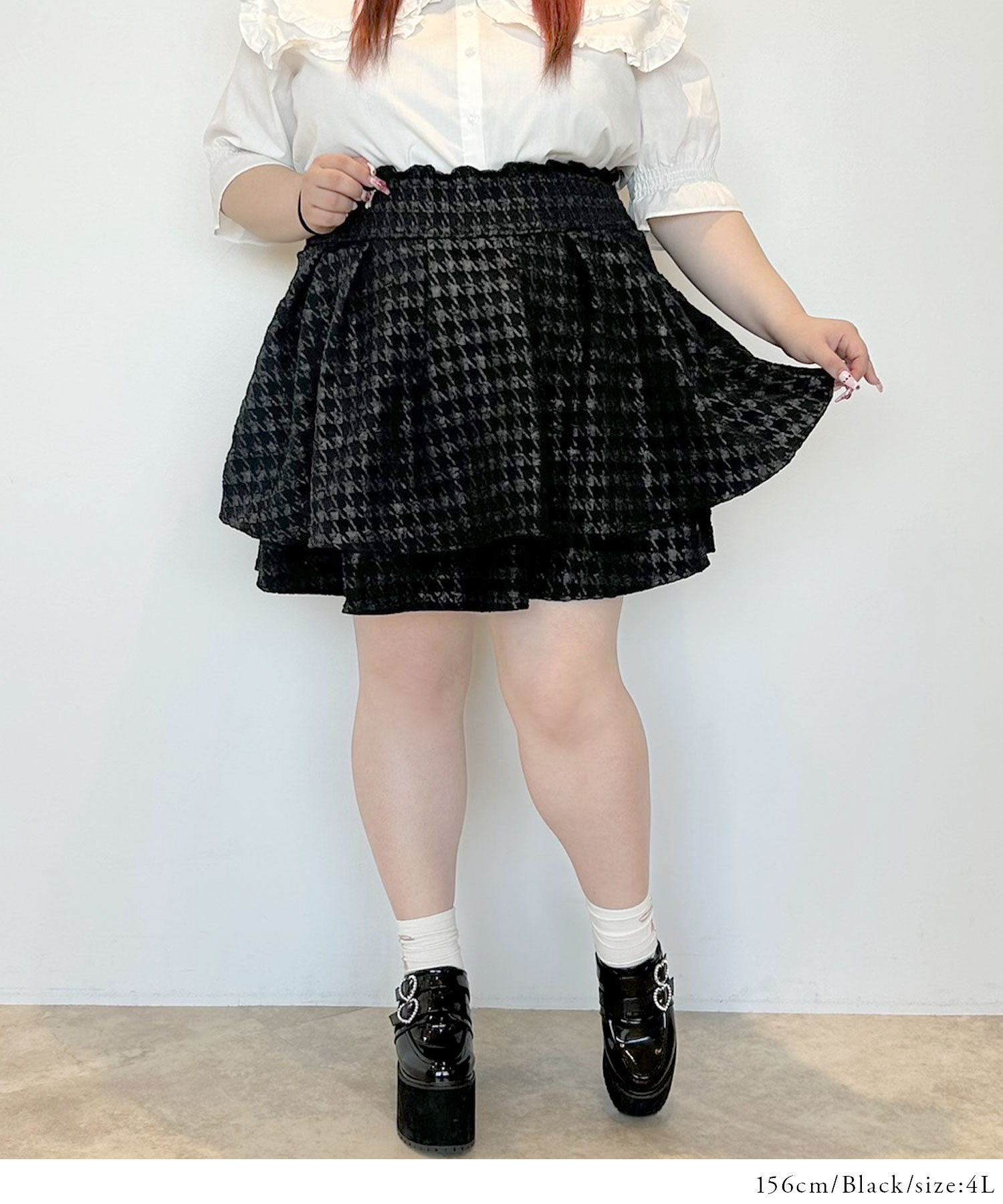 千鳥柄のモノトーン映え&ティアードのボリューム感で、一瞬でスタイルUP