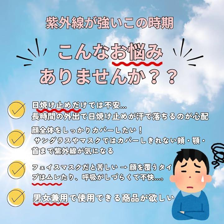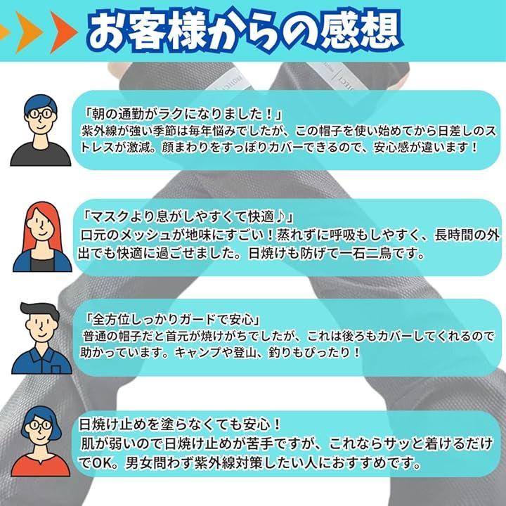 紫外線対策はもちろん、通気性や快適性にも優れており、長時間の使用でも快適さを保ちます。
