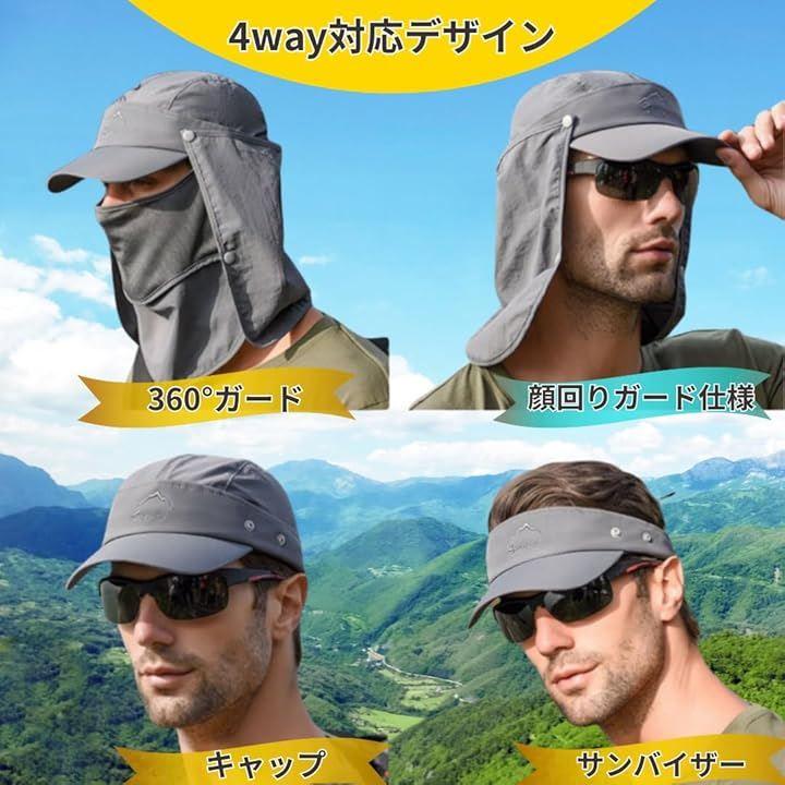 この4WAY日よけ帽子は、アウトドアや農作業、釣り、自転車など、さまざまなシーンで活躍するアイテムです。