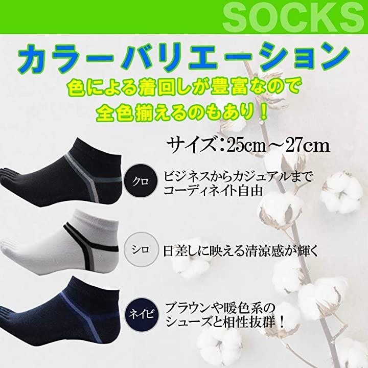 ・[サイズ]25cm~27cm [カラーバリエーション]ブラック/ホワイト/ネイビー/グレー/ライトグレー 5本指ソックス 五本指ソックス くるぶしソックス