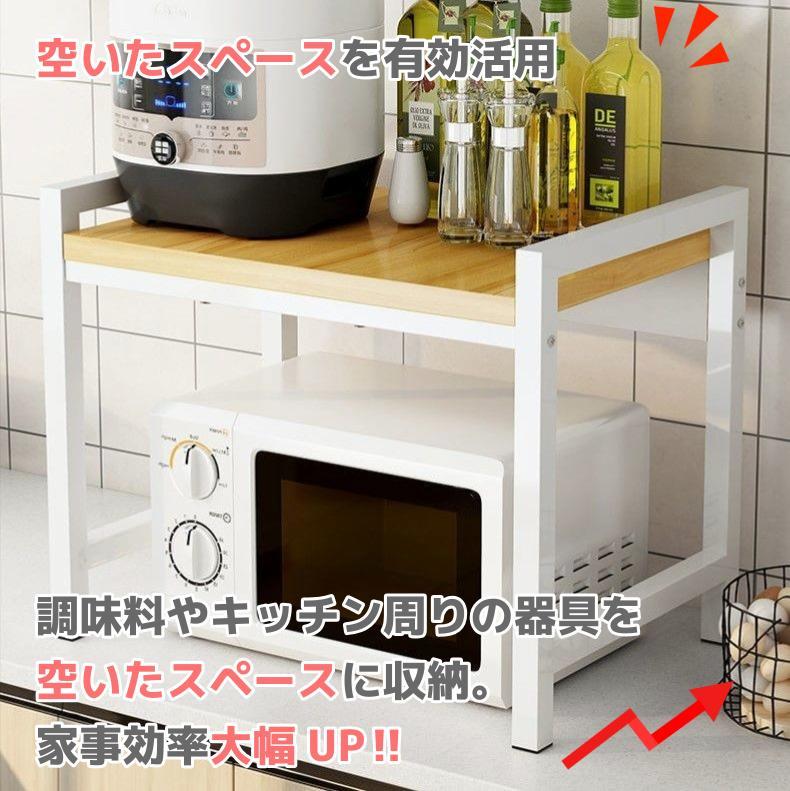 電子レンジ、炊飯器、オーブン、コーヒーメーカー等、様々な家電の上に設置し、ちょっとした作業スペースとして使え、キッチンスペースをより広々とお使いいただけます。 これ一つで家事効率を大幅にUPできます。