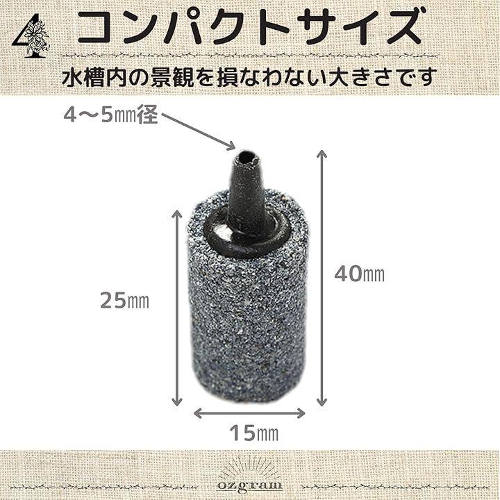 50個セット 径15mmx高25mm 円筒 アクアリウム エアーストーン 水槽 気泡 酸素 ディフューザー エアーポンプ メダカ 金魚